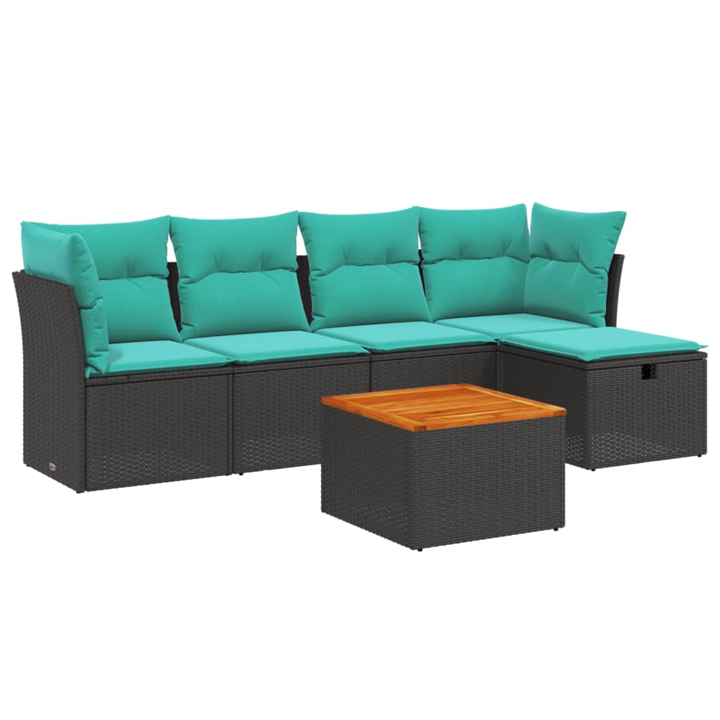 - Materiaal: PE-rattan, gepoedercoat staal en massief acaciahout met olieafwerking