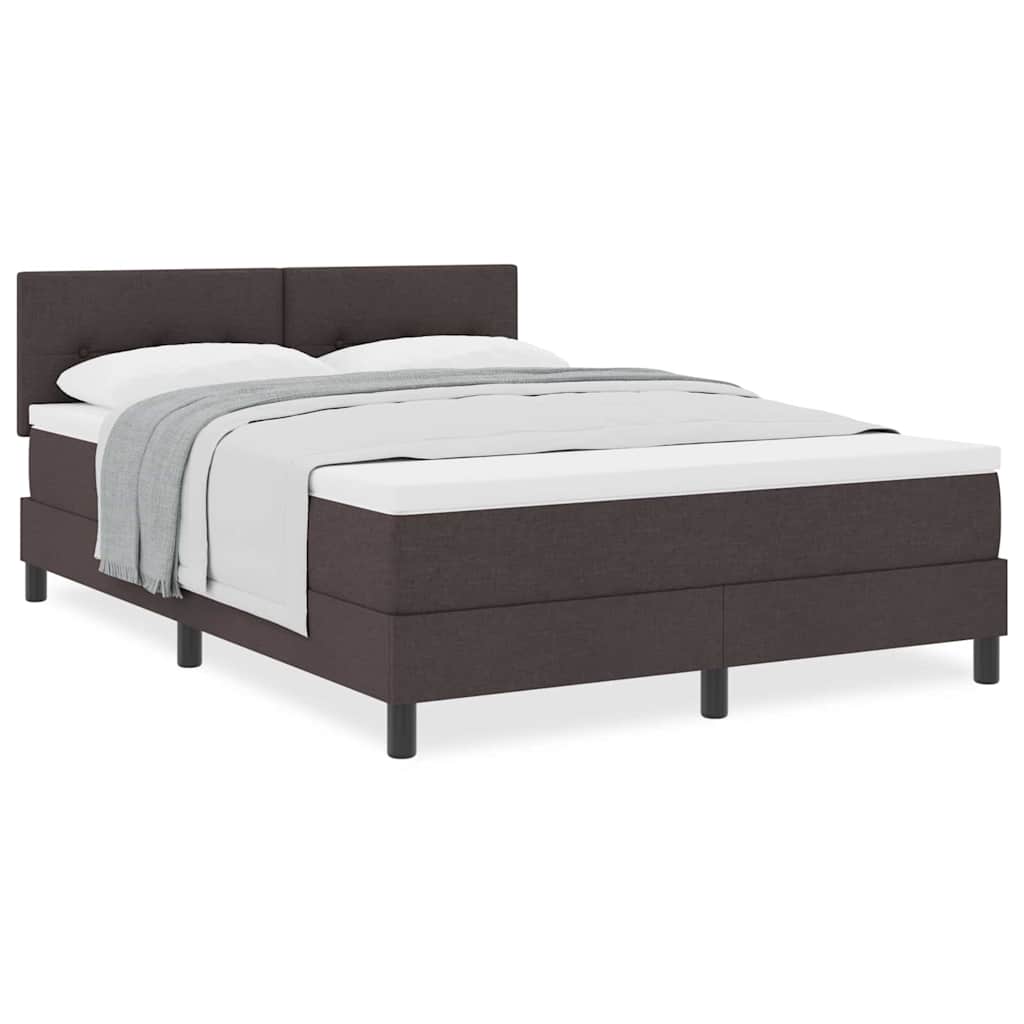 Dit boxspringbed heeft een moderne stijl met een praktisch ontwerp, ideaal voor gezellige slaapkamers of logeerkamers. De donkerbruine stof en het stijlvolle hoofdeinde creëren een warme sfeer, terwijl het stevige ontwerp zorgt voor comfortabele nachten.