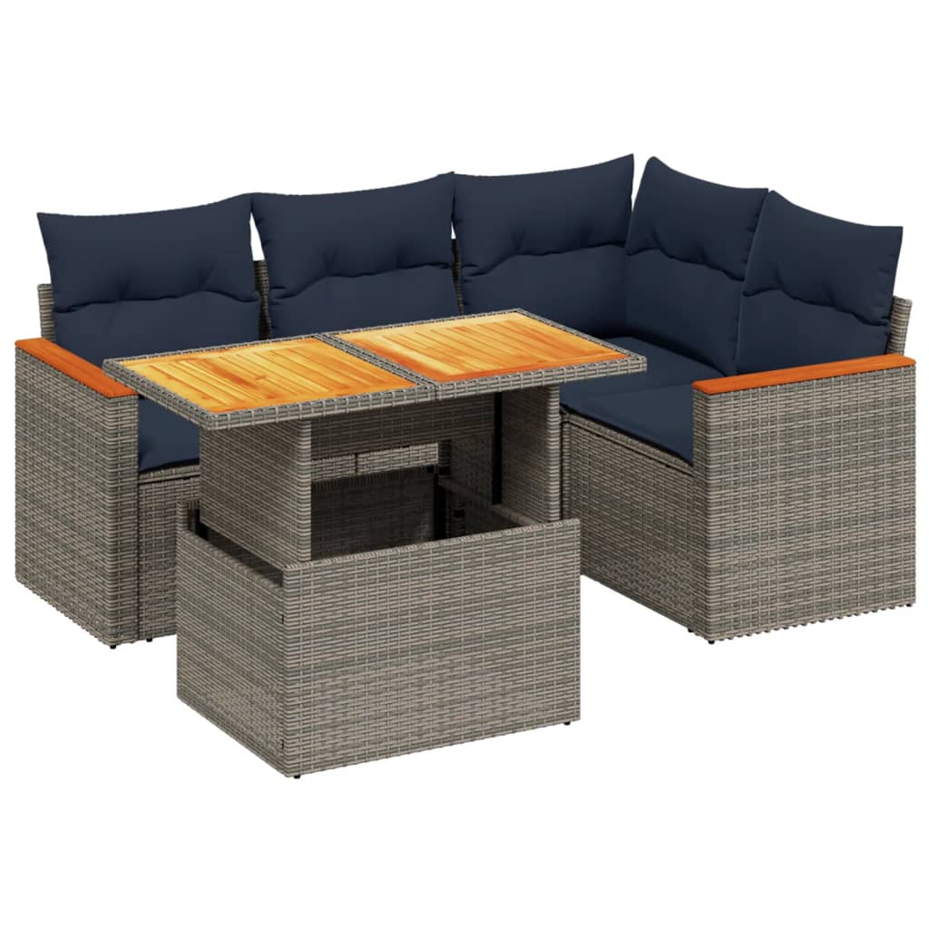 - Materiaal: PE-rattan, gepoedercoat staal en massief acaciahout met olieafwerking