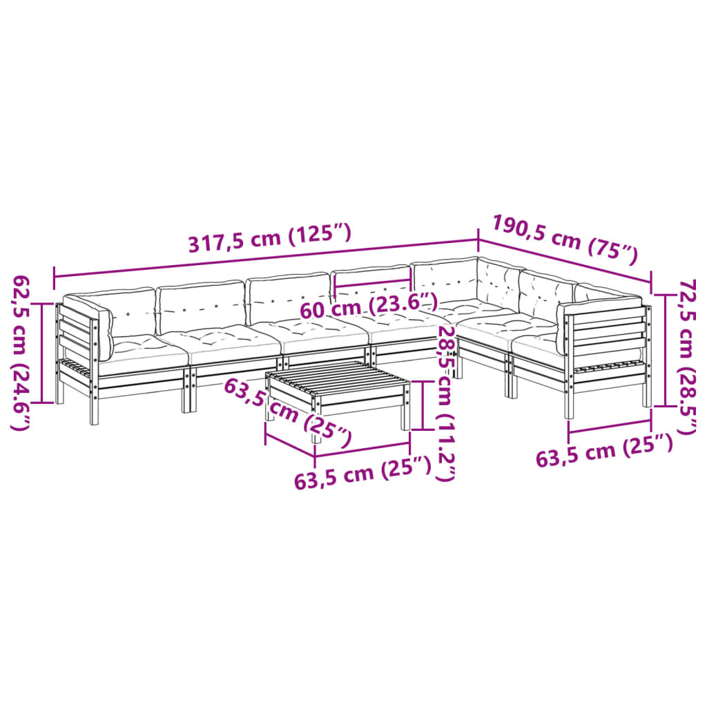 - Afmetingen rugkussen: 60 x 32 x 12 cm (L x B x D)