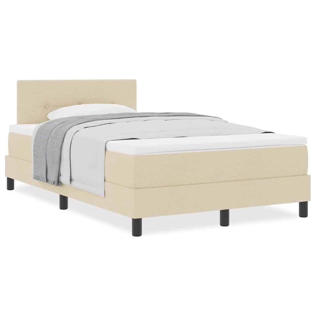 Dit boxspringbed combineert modern design met gebruiksgemak; het is perfect voor volwassen slaapkamers of logeerplek. De crèmekleurige stof en het hoofdeinde zorgen voor een relaxte sfeer, terwijl de stevige constructie je een comfortabele slaapervaring biedt.