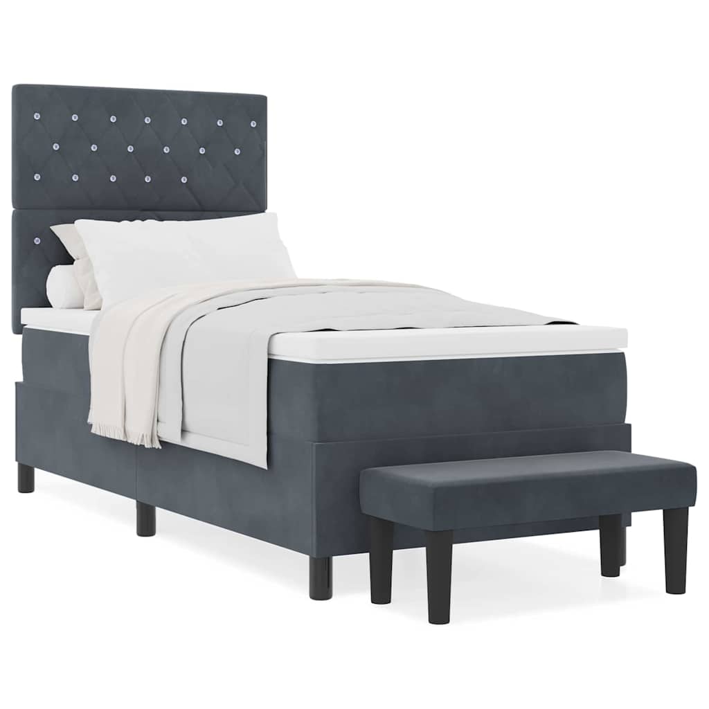 Dit prachtige boxspringbed is jouw toegang tot een stijlvolle nachtrust, perfect voor volwassenen die comfort en stijl willen in hun slaapkamer. Met zijn luxe donkergrijze fluwelen bekleding straalt het elegantie uit terwijl het een ontspannen sfeer biedt, ideaal om tot rust te komen.