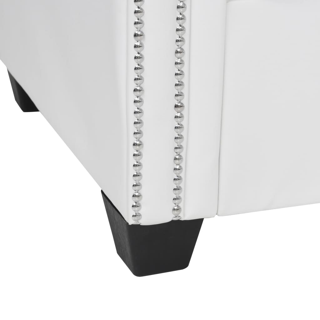 De knoopdetails en sierlijk gebogen armleuningen voegen een vleugje luxe toe, terwijl de dik gevoerde zittingen en rugleuningen extra comfortabel zijn. De kunstleren bekleding is gemakkelijk schoon te maken en slijtvast. De bank is eenvoudig te monteren.