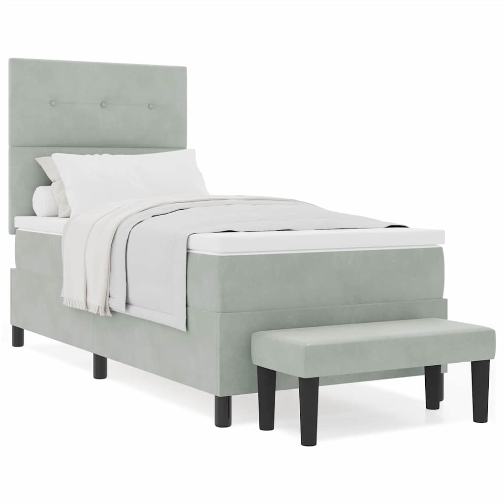 Dit mooie boxspringbed is een top keuze voor volwassenen die comfort en stijl willen. Het zachte lichtgrijze fluweel geeft een luxe sfeer en maakt het perfect om in te relaxen.