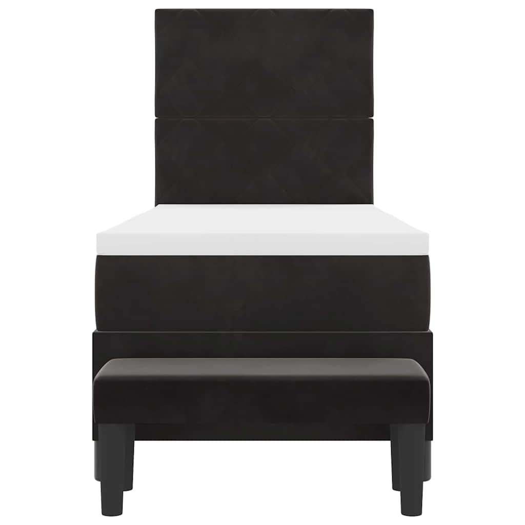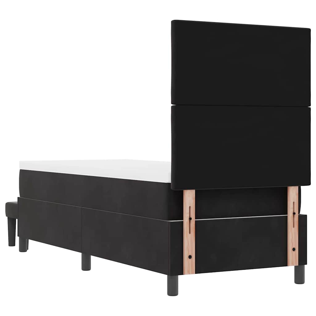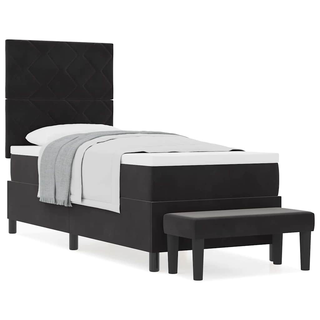 Dit stijlvolle boxspringbed is een comfy oplossing voor ouderen die een fijne en trendy slaapkamer willen. De zachte zwarte fluwelen bekleding geeft het een chic uiterlijk en zorgt voor een relaxte omgeving om in te ontspannen en te slapen.