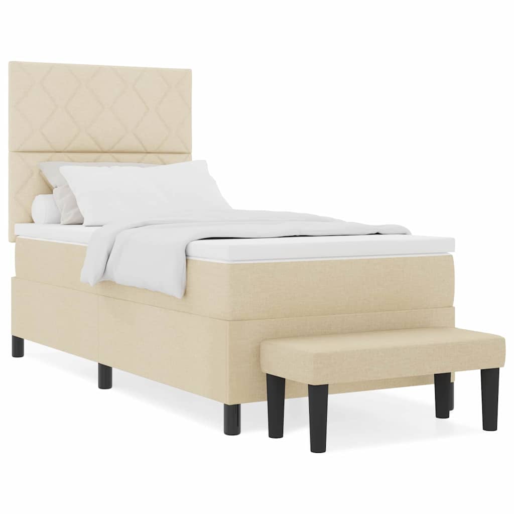 - Modern Ontwerp: Gevoerd met zachte crèmekleurige stof, dit bed voegt een stijlvolle touch toe aan je slaapkamer en past goed bij verschillende stijlen.