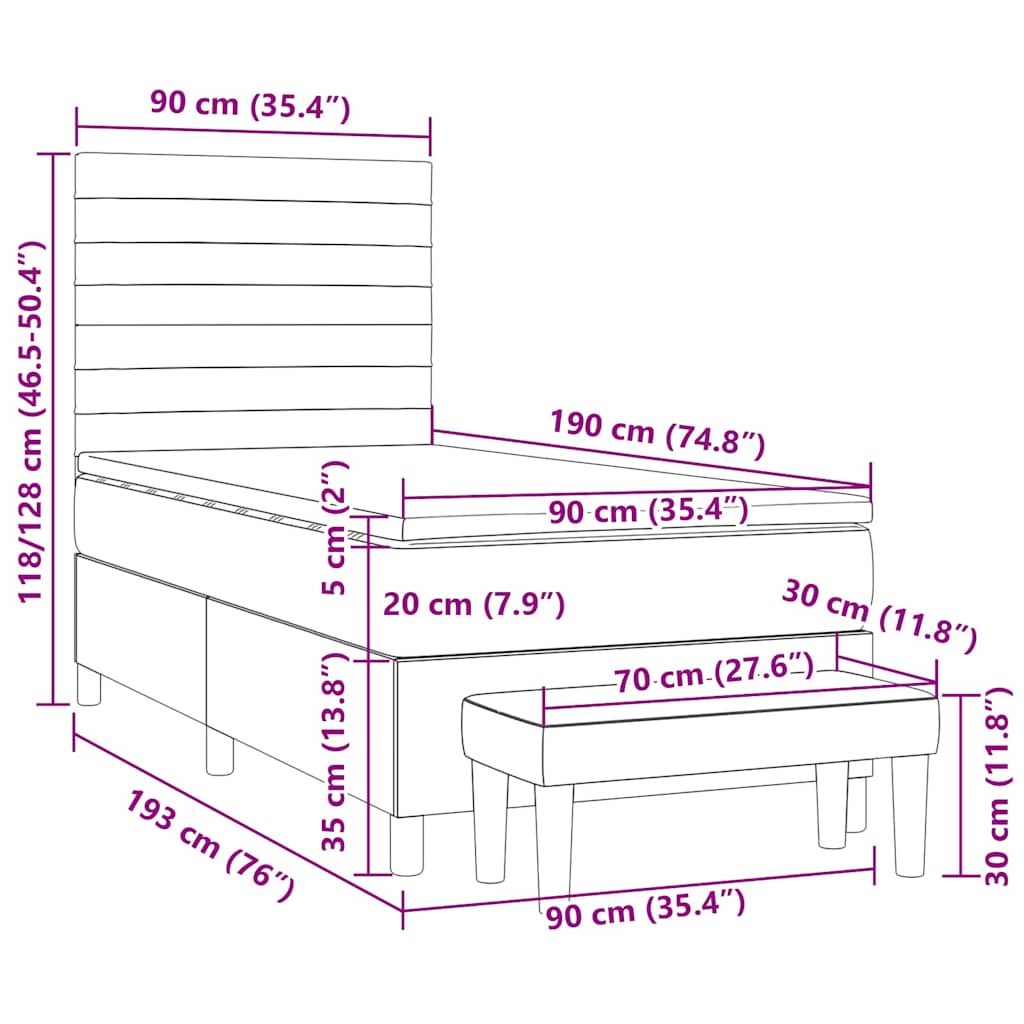 - Afmetingen: 90 x 190 x 20 cm (L x B x H)