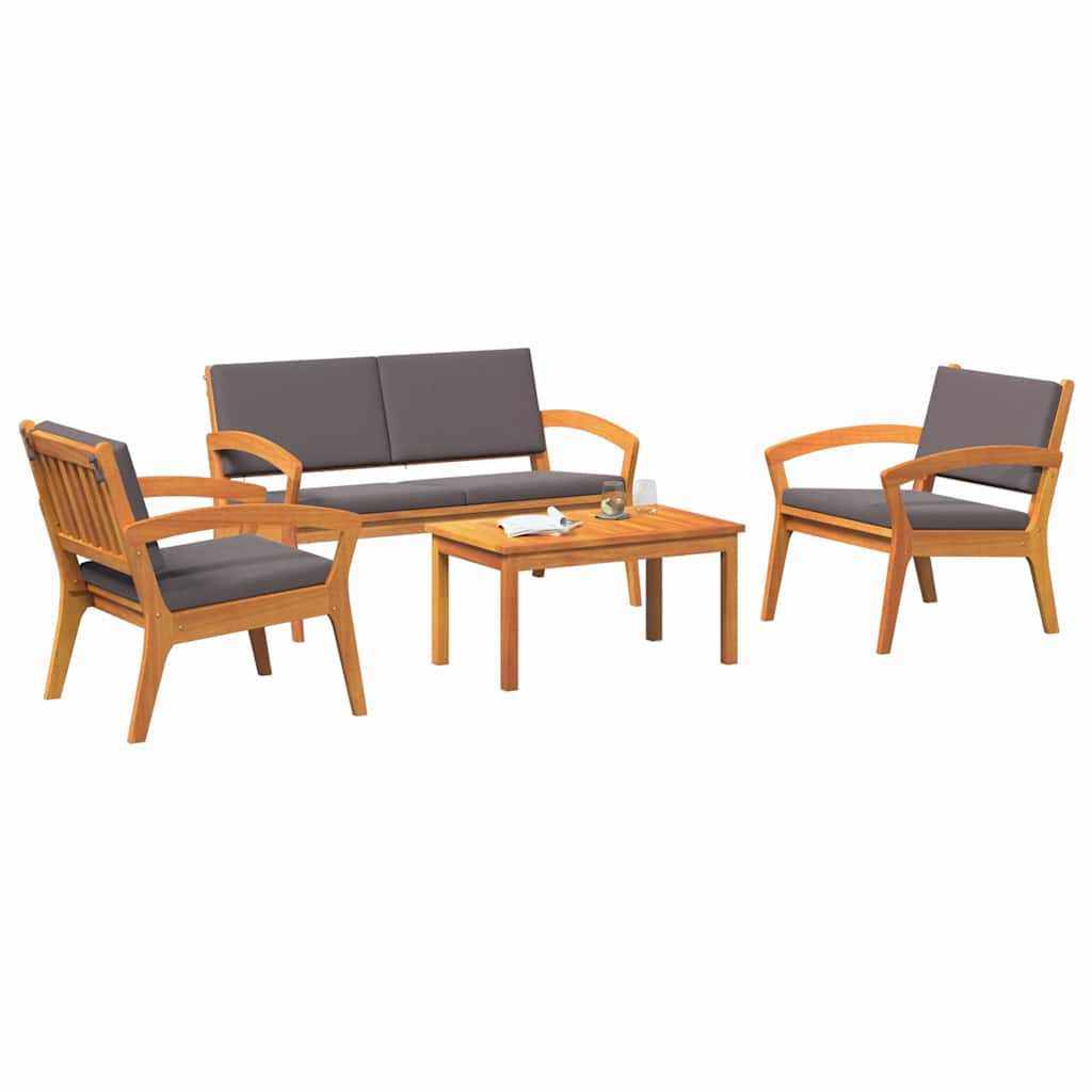 Deze 4-delige Bistro Set is perfect voor zowel binnen als buiten. Gemaakt van massief acaciahout met stijlvolle donkergrijze kussens, het biedt een geweldige plek om te chillen, of je nu je balkon of woonkamer wilt opfrissen.
