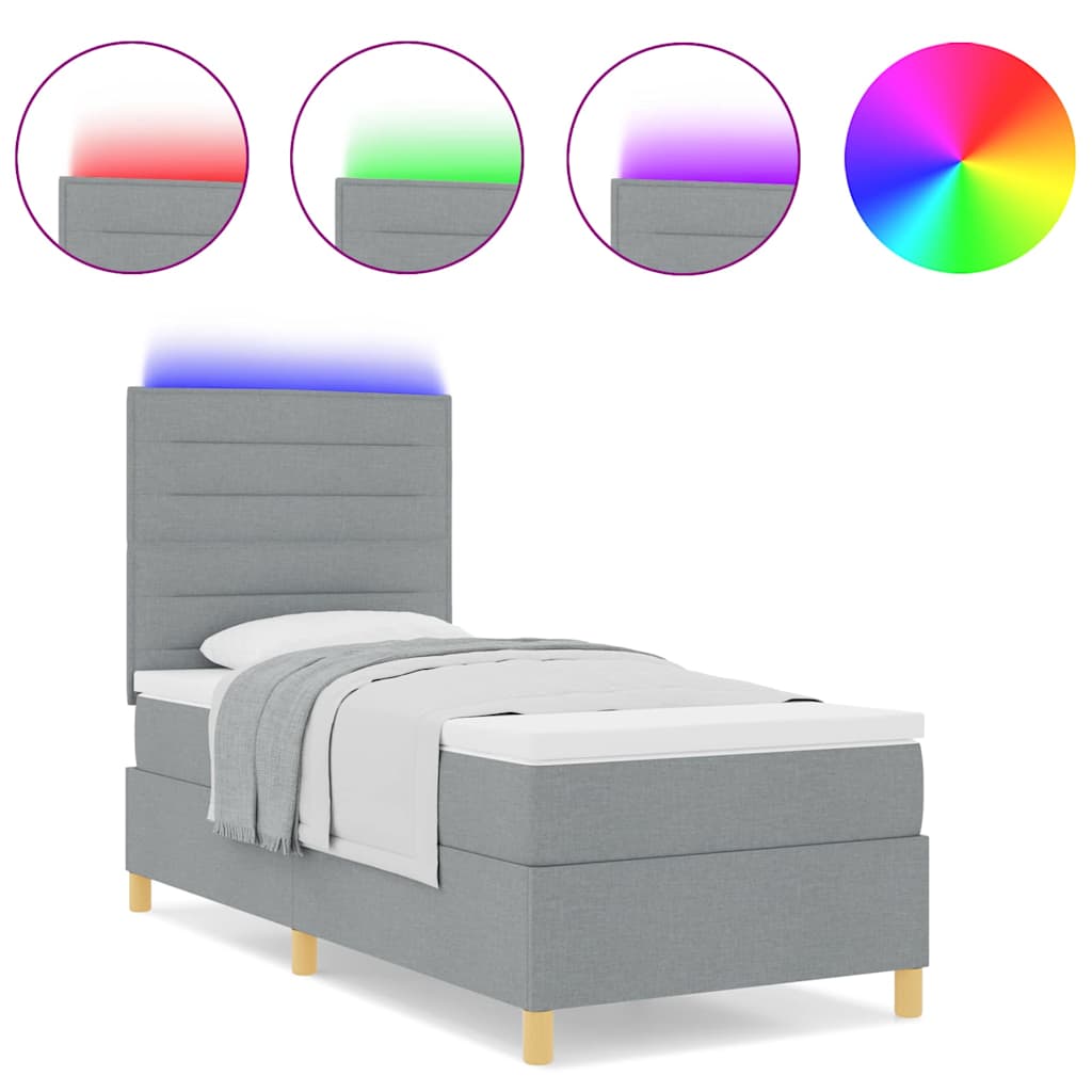 - Kenmerken: Kleur: Lichtgrijs | Materiaal: Stof | Afmeting: 80 x 200 cm | Kenmerken: Vlekbestendig | Componenten: 1x Bedframe, 1x Hoofdbord, 1x Matras, 1x Matras topper, 1x LED strip | Binnengebruik: Ja | Stijl: Modern | Montage vereist: Ja | Aantal items: 1 | Aanbevolen gebruik: Hoofdbord voor standaard bedframe.