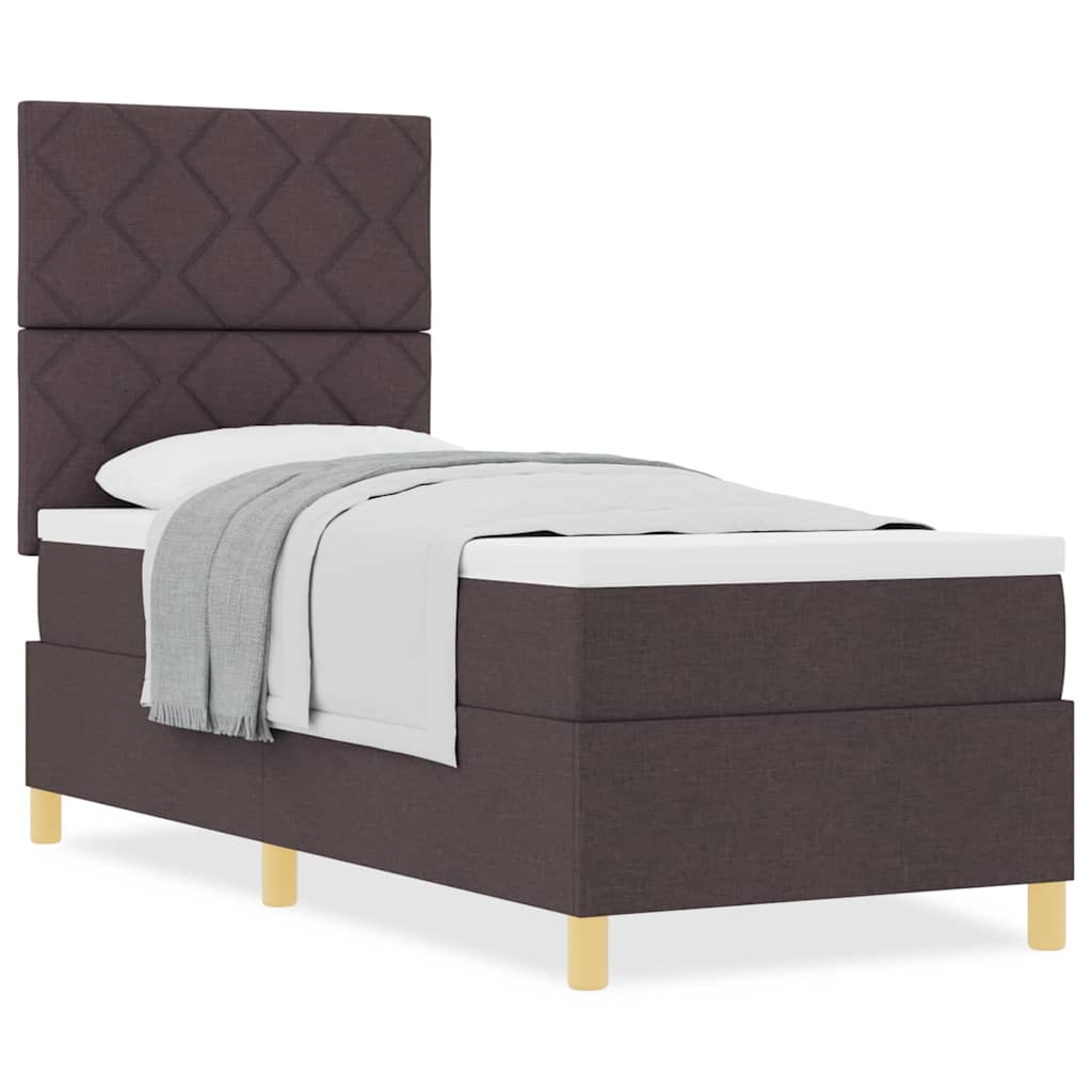 Dit boxspringbed met matras is een must-have voor je slaapkamer, gemaakt voor comfort en stijl. De moderne donkerbruine stof met een opvallend blokontwerp ziet er niet alleen goed uit, maar geeft ook een uitnodigende uitstraling in elke kamer.