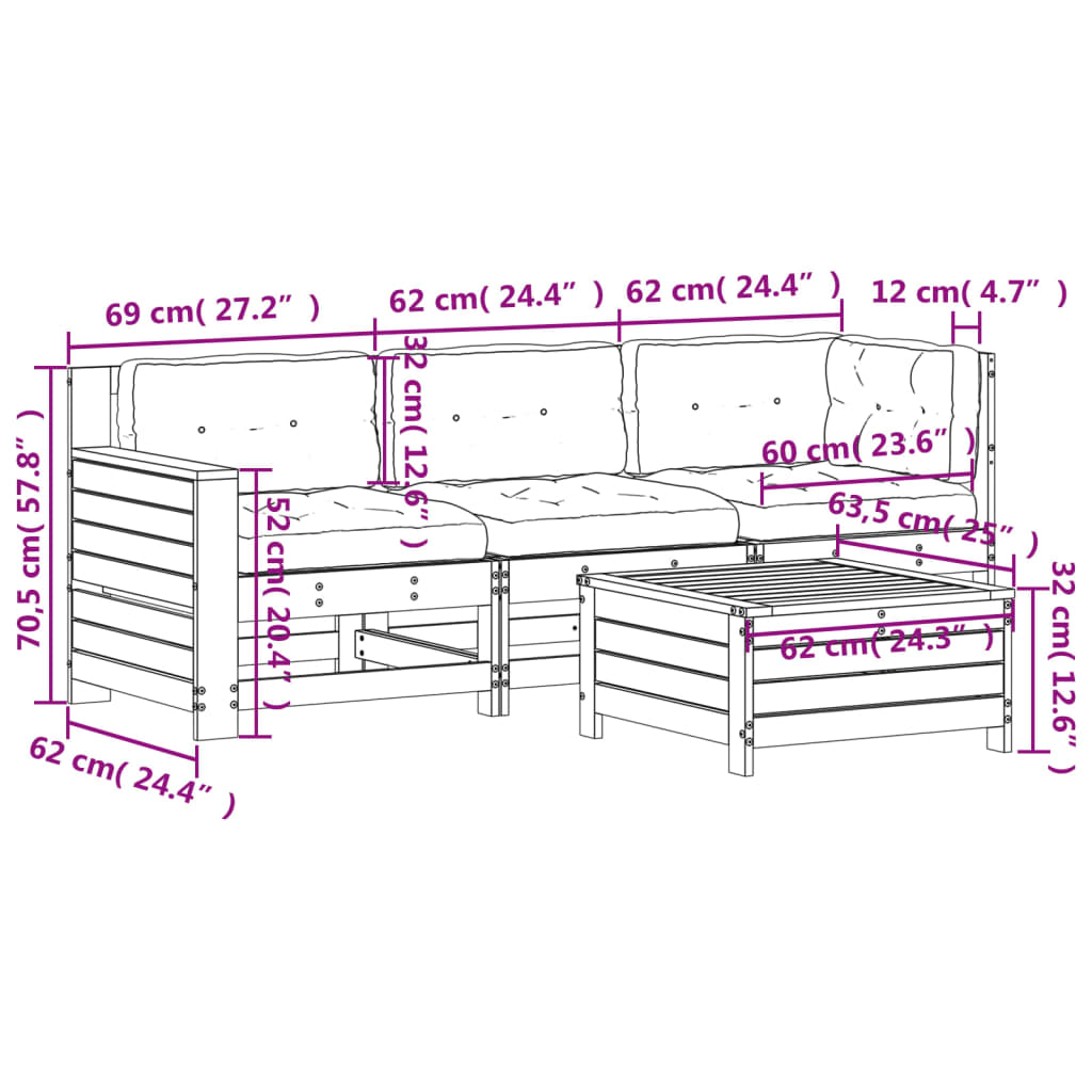- Afmetingen tuinvoetenbank: 62 x 63,5 x 32 cm (B x D x H)