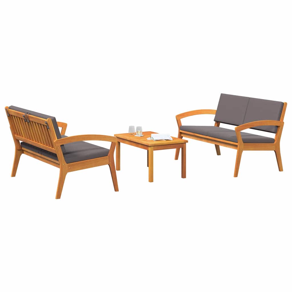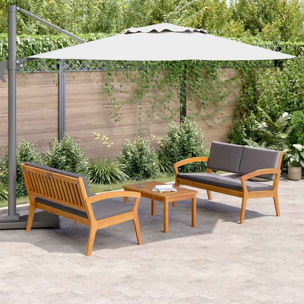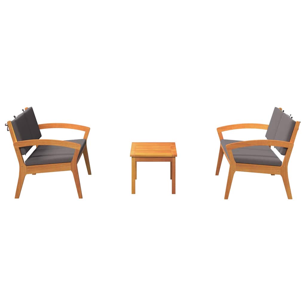 Deze 3-Delige Bistro Set mixt moderne stijl met comfort, ideaal om binnen of buiten te relaxen. Met massief acaciahout en donkergrijze kussens is het een gezellige plek om te zitten, of je nu op je balkon bent of in je woonkamer.
