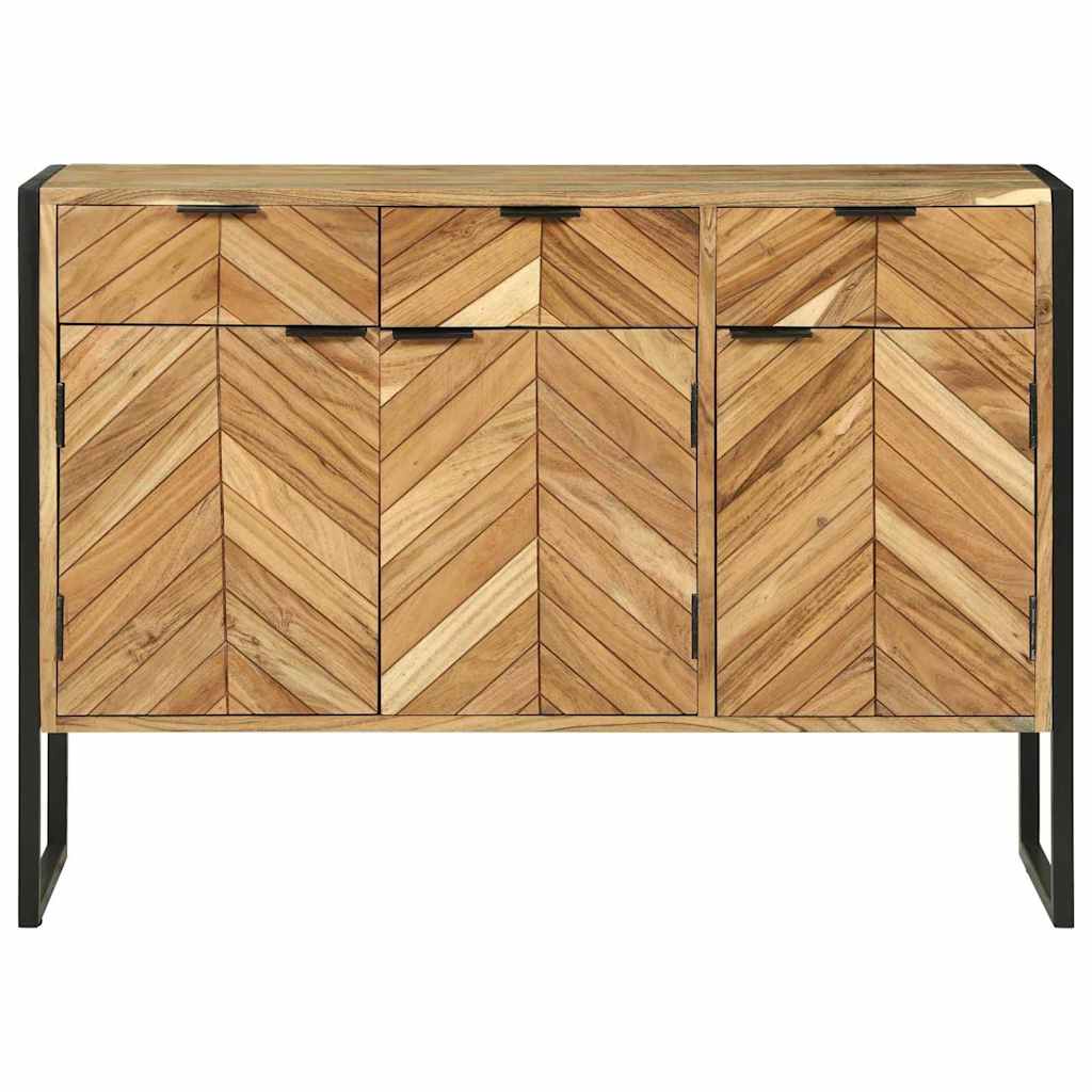 Deze stijlvolle Zijconsole mengt functie met modern design, waardoor het een geweldige toevoeging is aan je eet- of woonruimte. Met zijn mooie houten afwerking en massief zwart metalen frame is het niet alleen een opslagunit, maar ook een prachtig stuk dat je woningdecoratie echt naar een hoger niveau tilt.