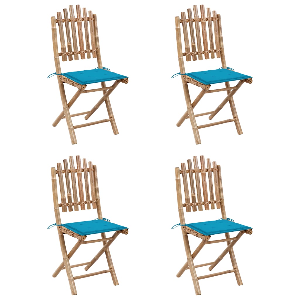 De tuinset is gemaakt van massief bamboe waardoor hij sterk en duurzaam is. Hij is ook weerbestendig, waterdicht en gemakkelijk schoon te maken met een vochtige doek. De tafel en stoelen zijn inklapbaar om ruimte te besparen wanneer ze niet in gebruik zijn. De meegeleverde kussens bieden extra comfort tijdens het loungen. Elk kussen is gemaakt van 100% polyester dat behandeld is om het waterafstotend te maken. Elk kussen heeft twee sets touwtjes voor stevige bevestiging aan de eetstoel.