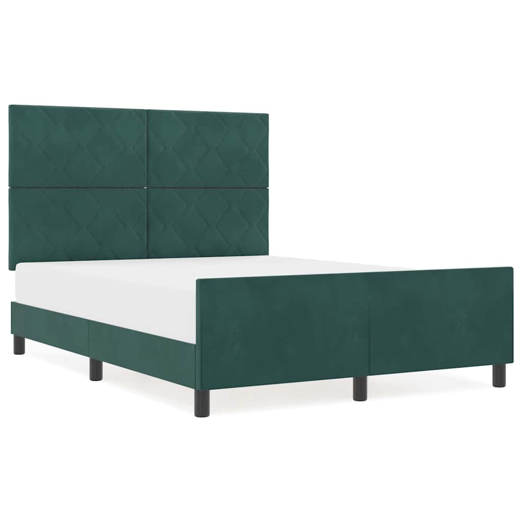 Dit moderne donkergroene bedframe geeft je slaapkamer een frisse look met zijn opvallende geometrische diamantblok ontwerp. De strakke lijnen en matte afwerking zorgen voor een stijlvolle en uitnodigende uitstraling, waardoor het een echt middelpunt is in elke volwassen slaapkamer.