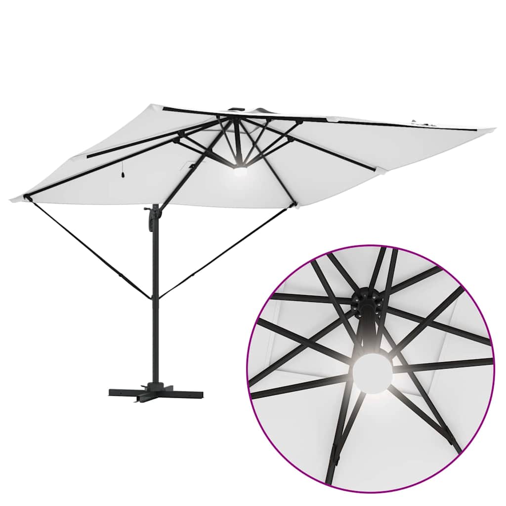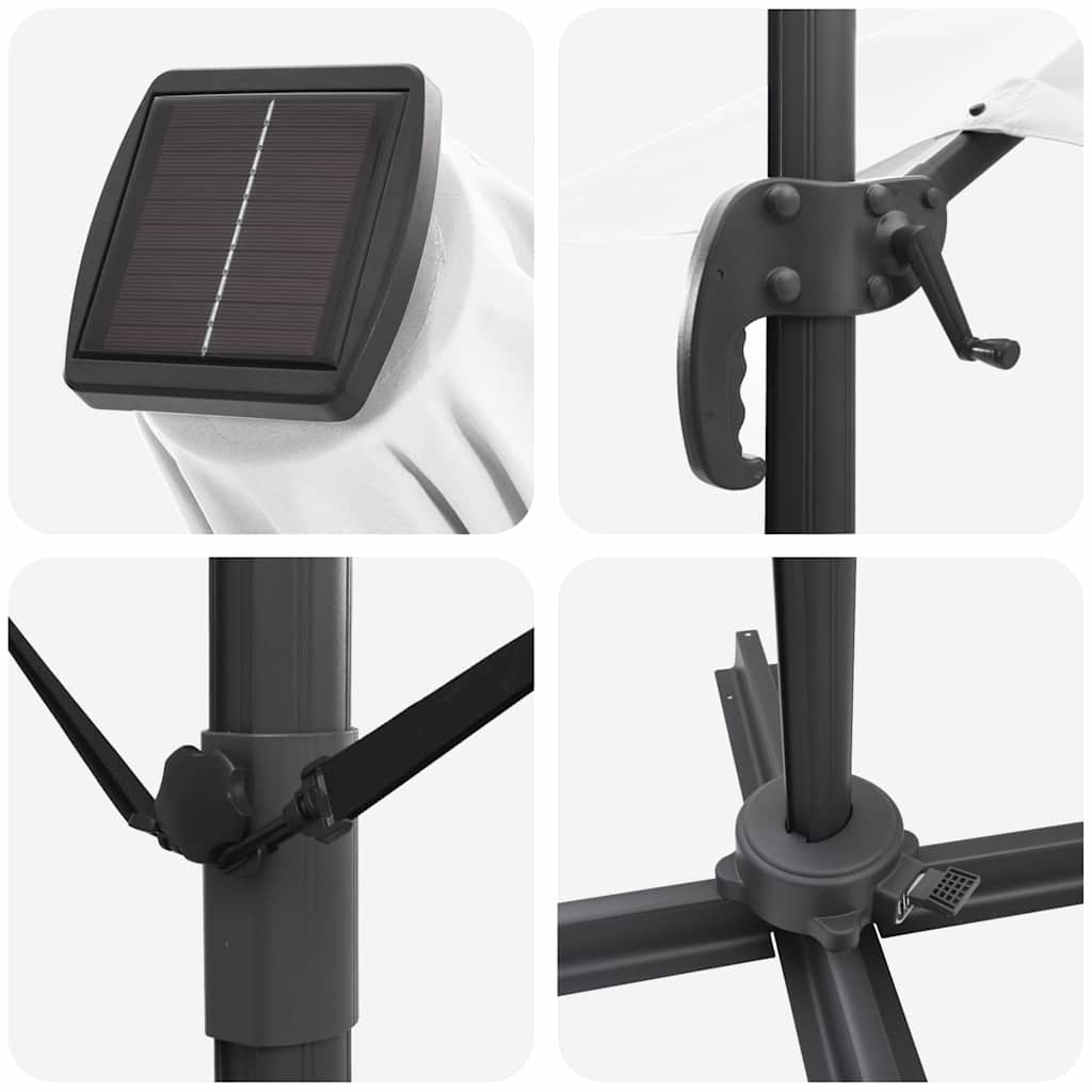 Deze Vrijdragende Parasol met LED''s is een geweldige mix van stijl en functie, perfect voor het opfleuren van je buitenruimtes. Het strakke ontwerp biedt veel schaduw en ziet er ook nog eens mooi uit op je patio, in de tuin of op je balkon. Je bijeenkomsten worden nog leuker, ongeacht hoe fel de zon is.