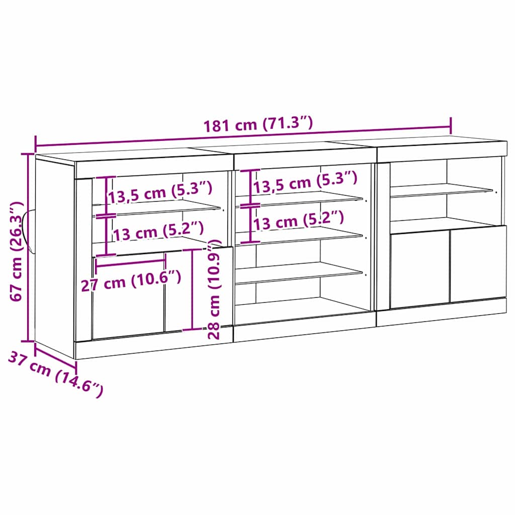 Dit dressoir combineert stijl en functionaliteit met verstelbare planken en veel opbergruimte.- Aantal items: 3