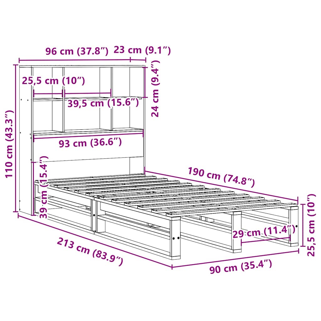 - Geschikte matrasmaat: 90 x 190 cm (B x L) (matras niet inbegrepen)