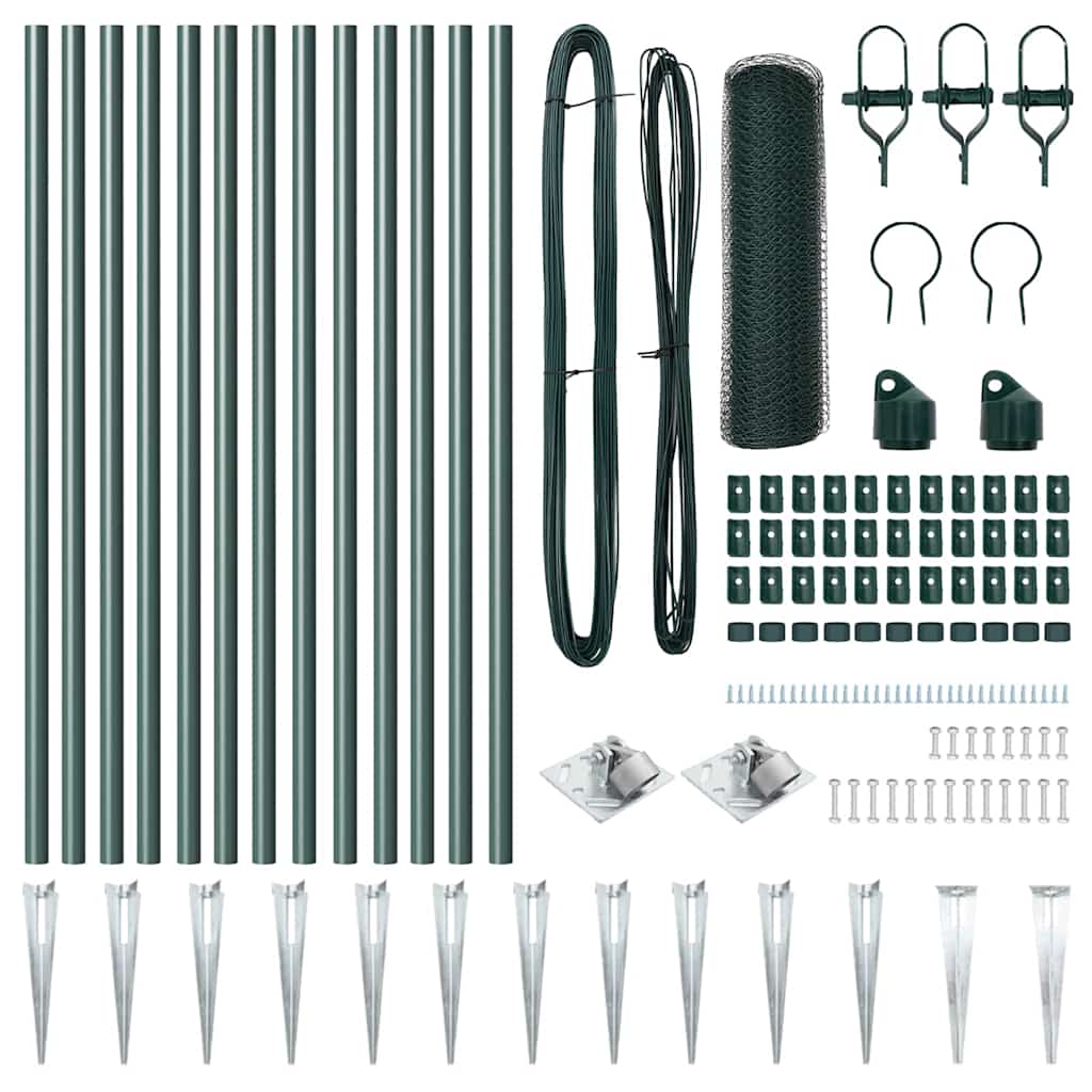 - 1 x Omheining rol, 22 x Post, 4 x Hoekpost, 22 x Plastic kap, 66 x Plastic spankabel ondersteuning, 4 x Hoekpost kap, 4 x Hoekpost hardware, 6 x Spanner, 2 x 25 m Binddraad, 2 x 80 m Spankabel