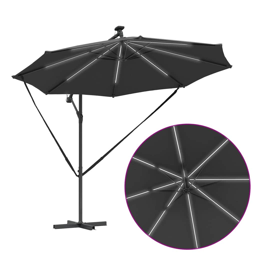 - Milieuvriendelijke verlichting op zonne-energie Verlicht je avondbijeenkomsten met de geïntegreerde op zonne-energie werkende LED-verlichting op iedere rib van de parasol. Deze energiezuinige lampen bieden een charmante ambiance, waardoor je je buitenplezier in de nacht kunt verlengen met minimale impact op het milieu.