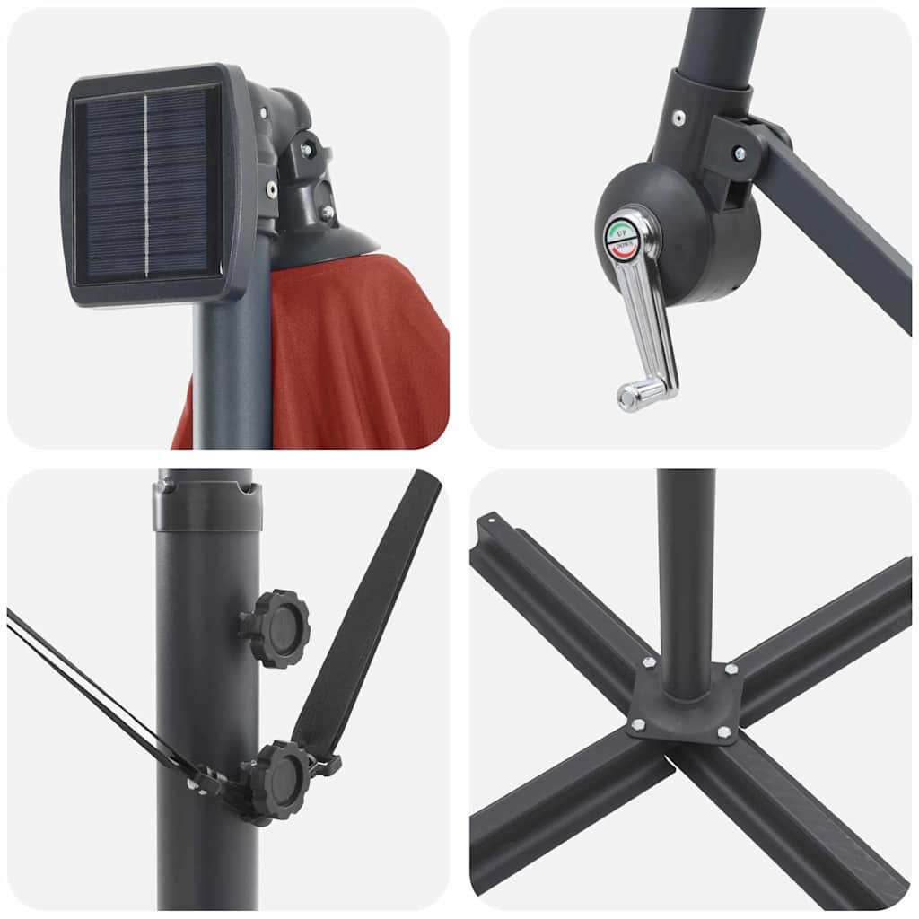 - Zonne-energie LED''s: Geboren voor avondgenot, omvat deze parasol heldere, milieuvriendelijke LED-verlichting die wordt aangedreven door zonne-energie. Of je nu een diner in de achtertuin organiseert of een laat avondgesprek hebt, de gezellige ambiance die gecreëerd wordt verhoogt elke nacht buitenervaring.