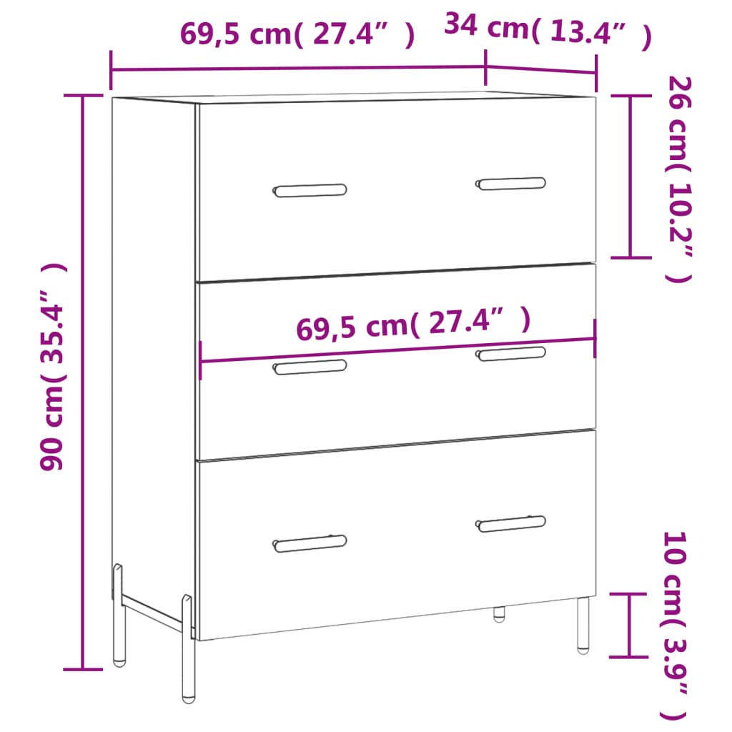 - Afmetingen: 69,5 x 34 x 90 cm (B x D x H)