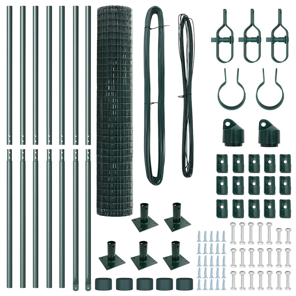 - 1 x Euro hek, 11 x Paal, 2 x Hoekpaal, 11 x Spijker, 2 x Hoekspijker, 11 x Plastic kap, 33 x Plastic spannen draad ondersteuning, 2 x Hoekpaal kap, 2 x Hoekpaal hardware, 3 x Spanner, 1 x 25 m Binddraad, 1 x 80 m Spanningsdraad
