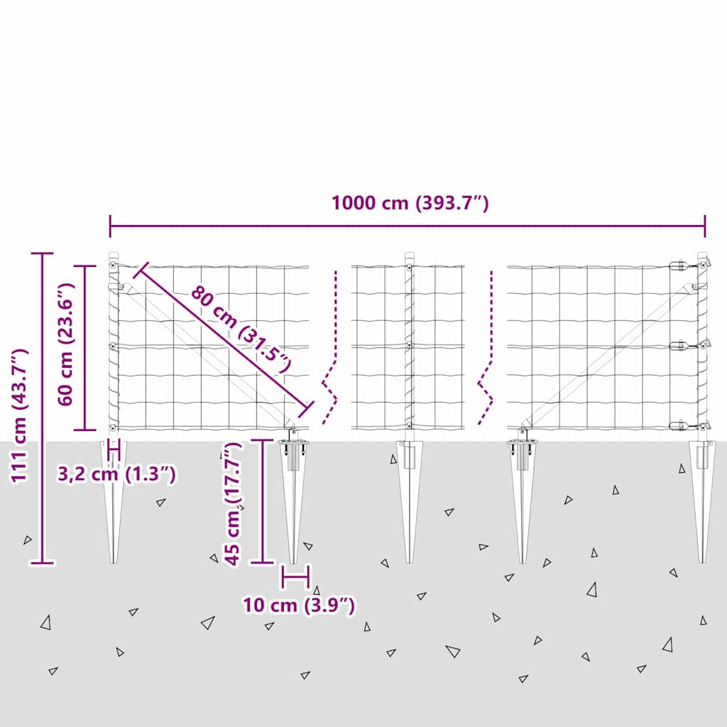 - 1 x Euro hek, 11 x Paal, 2 x Hoekpaal, 11 x Spijker, 2 x Hoekspijker, 11 x Plastic kap, 33 x Plastic spannen draad ondersteuning, 2 x Hoekpaal kap, 2 x Hoekpaal hardware, 3 x Spanner, 1 x 25 m Binddraad, 1 x 80 m Spanningsdraad