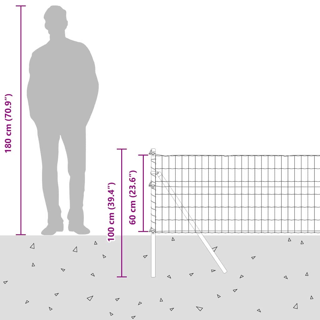 - 1 x Euro hek, 11 x Paal, 2 x Hoekpaal, 11 x Spijker, 2 x Hoekspijker, 11 x Plastic kap, 33 x Plastic spannen draad ondersteuning, 2 x Hoekpaal kap, 2 x Hoekpaal hardware, 3 x Spanner, 1 x 25 m Binddraad, 1 x 80 m Spanningsdraad