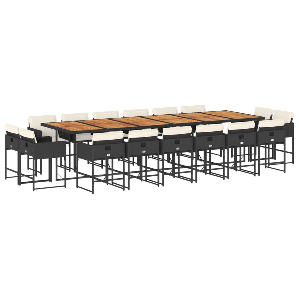 - Materiaal: PE-rattan, gepoedercoat staal en massief acaciahout met olieafwerking