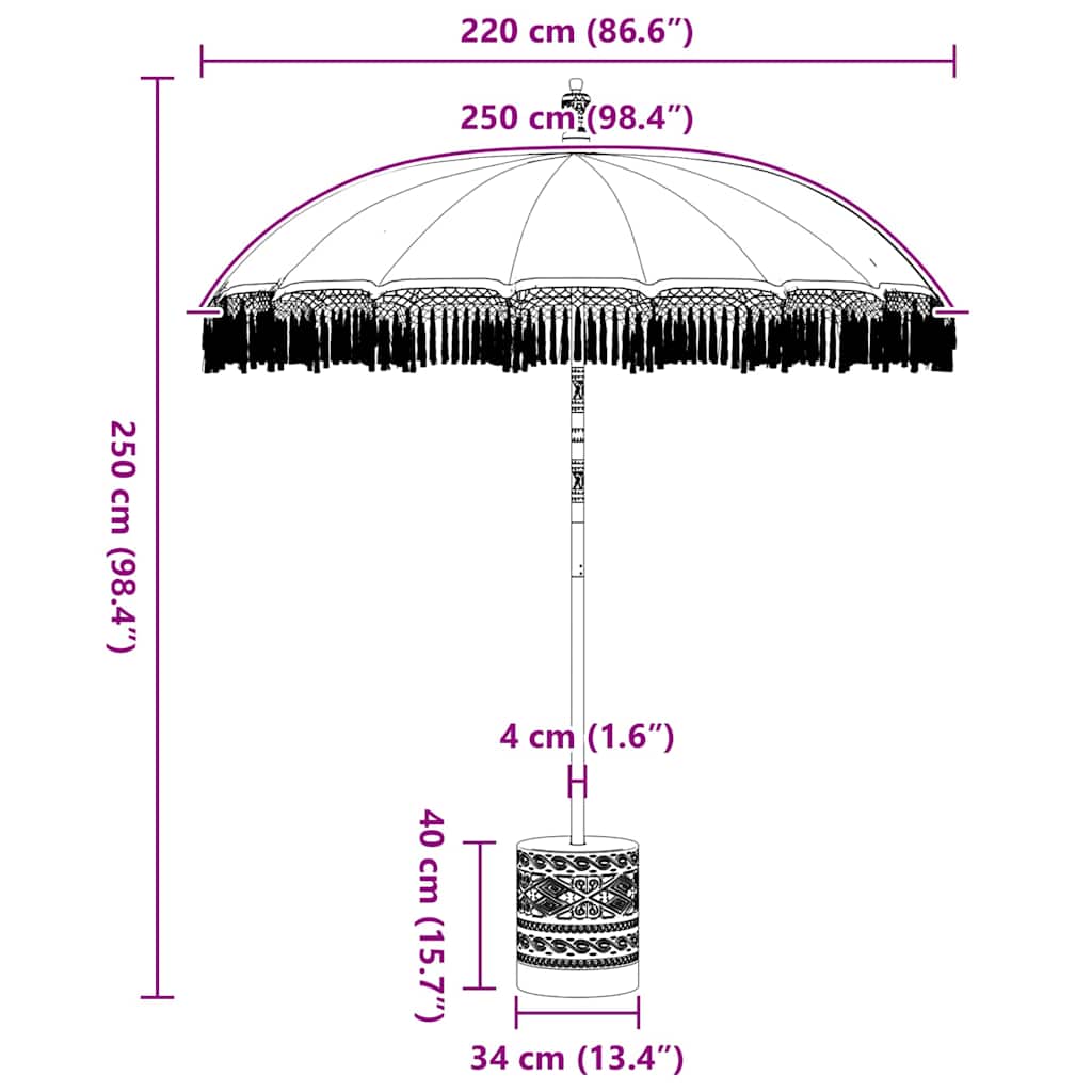 - Balinese Stijl: Dankzij de Balinese invloeden heeft de parasol tropische en handgemaakte details. De crème en bruine kleuren passen perfect in je tuin of op je terras, verfraaien de omgeving en creëren een vredige, culturele sfeer die ideaal is om te ontspannen of gasten te ontvangen.