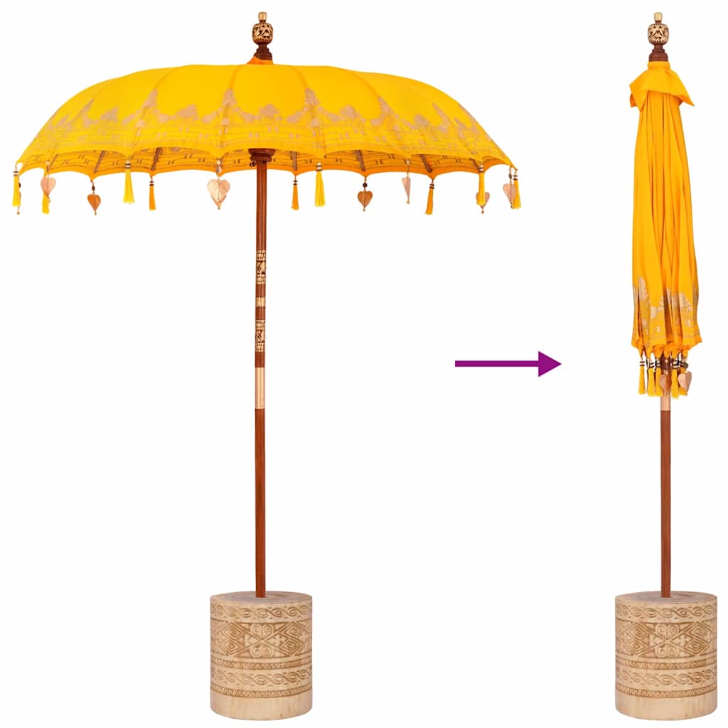 - Balinese Stijl: Geïnspireerd door klassieke Balinese designs, heeft deze parasol mooie handgemaakte details en warme kleuren die je tuin laten voelen als een vredige oase. De stijl bevordert echt ontspanning en laat de elegantie van Balinese decoratie zien.