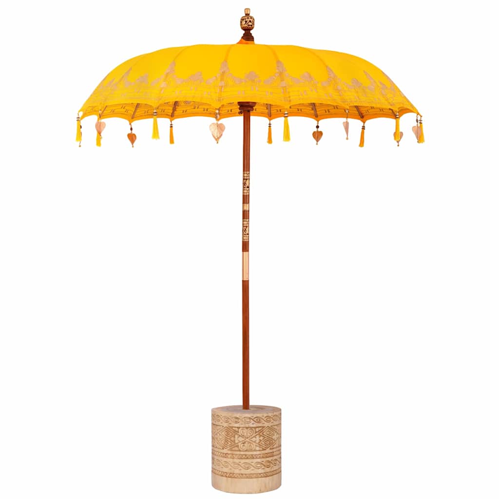 De Balinese Parasol biedt een leuke mix van praktisch en relaxte vibes, helemaal in Balinese stijl. Het is een mooie aanvulling voor elke buitenruimte, die je tuin of terras omhul met een rustige sfeer terwijl je koel blijft op warme zomerdagen. Met zijn warme, aardse geel- en bruintinten past het perfect bij de natuur en geeft het je terras een stijlboost.