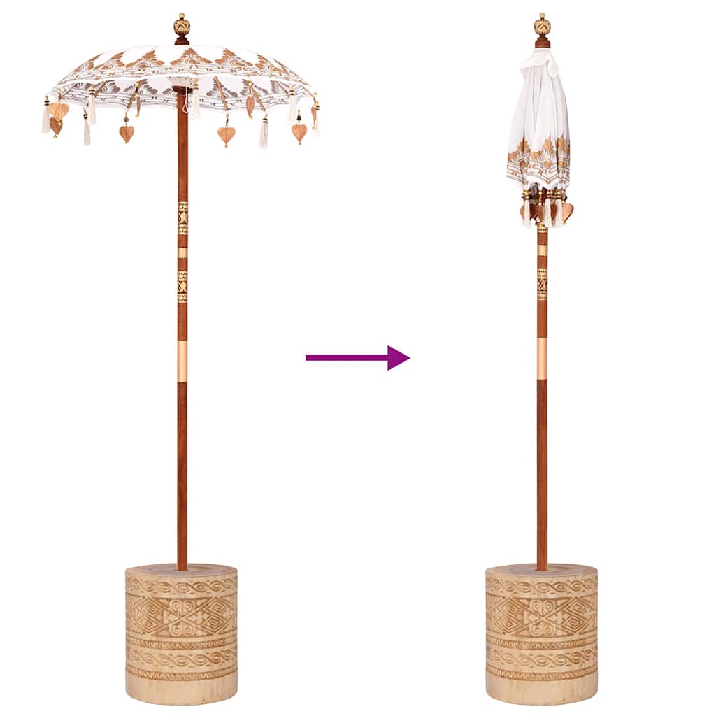 - Aanbevolen gebruik: Ideaal voor tuinen, terrassen en buitenevenementen, deze parasol past bij allerlei stijlen. Of je nu een feestje organiseert of gewoon geniet van een rustige momenten, deze Balinese parasol is precies wat je nodig hebt.