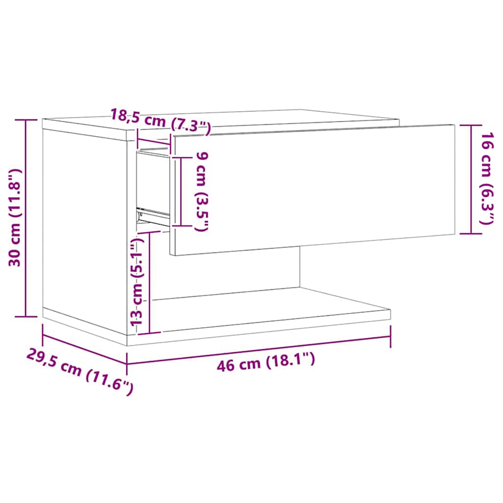 - Onderhoudsvriendelijk: dankzij het gladde oppervlak is het zwevende nachtkastje gemakkelijk schoon te maken met een vochtige doek en vereist het minder onderhoud.