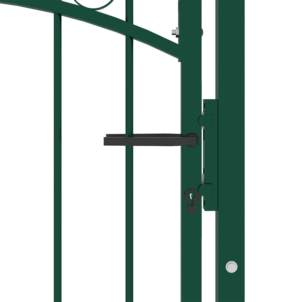 Dankzij het elegante ontwerp met gewelfde bovenkant en sterke horizontale beugels om het frame te versterken, biedt deze poort een hoge mate van veiligheid en is hij een fantastische ingang naar je eigendom. De stevige tuinpoort is vervaardigd van robuust staal en is gepoedercoat tegen roest en corrosie. Bovendien is hij uitgerust met een vergrendelingssysteem met 3 bijpassende sleutels en wordt hij geleverd met 2 stevige palen en stevige scharnieren voor eenvoudige installatie.