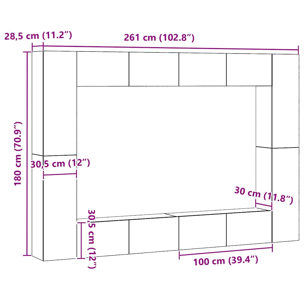 Verander je woonkamer met onze vidaXL 8-delige TV-kastset, perfect voor moderne ruimtes. De stijlvolle afwerking in zwart eiken voegt een vleugje klasse toe en is super functioneel.