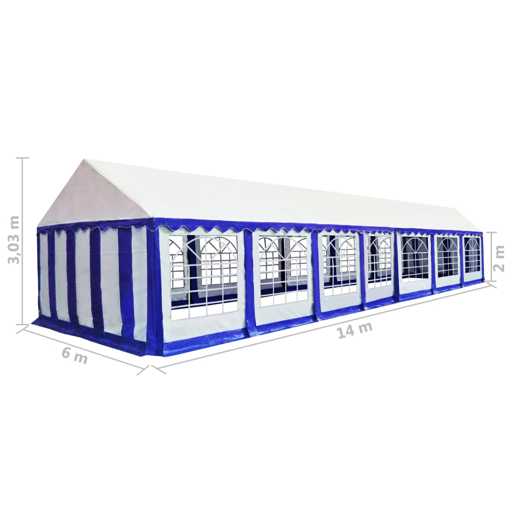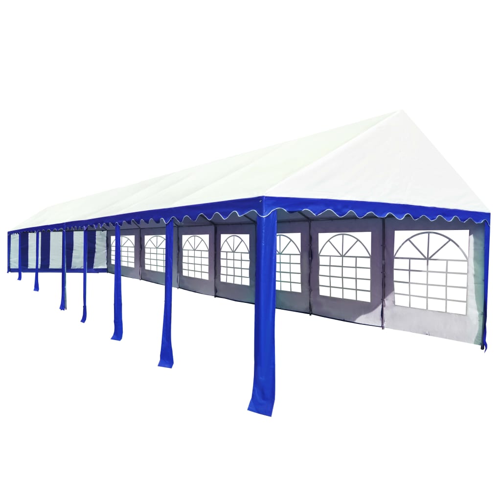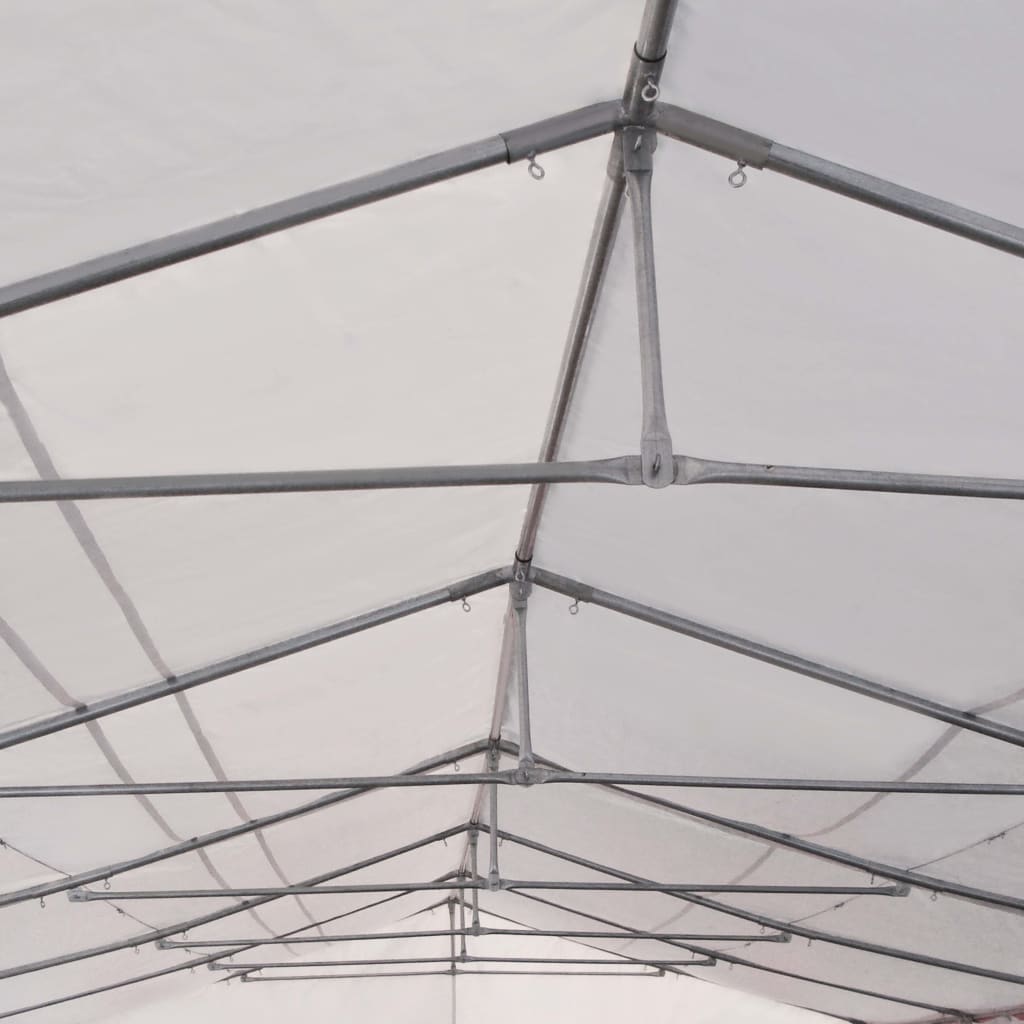 De luifel van de feesttent is gemaakt van 100% PVC, waardoor het dak en de zijwanden uv-beschermend en waterbestendig zijn. Er zijn 4 vensterpanelen met elk 2 decoratieve ramen en 2 deurpanelen in verschillende afmetingen, elk met een handige roldeuropening met ritsen voor eenvoudige toegang. Dit frame is vervaardigd van roestbestendig staal en dus zeer duurzaam.
