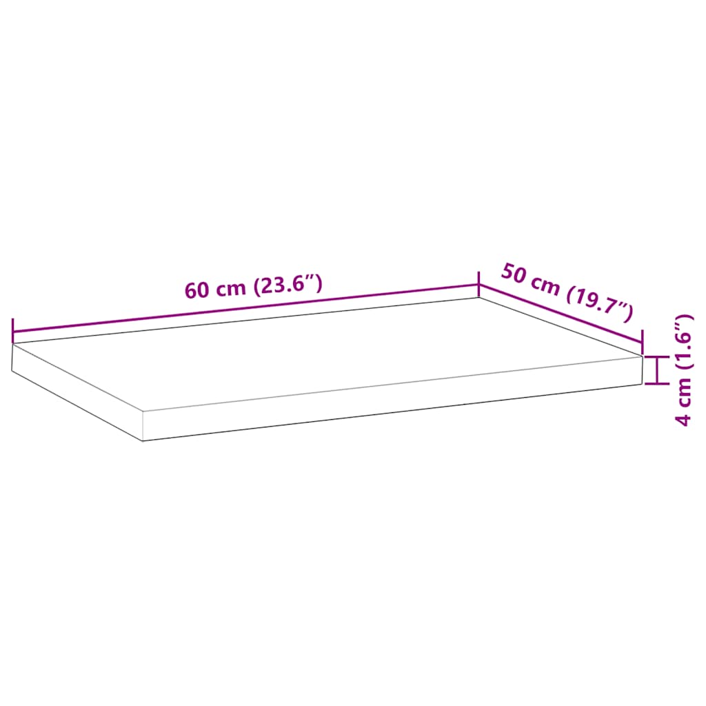- Onbehandeld oppervlak: dit tafelblad is gemaakt van onbehandeld acaciahout. Je kunt de natuurlijke kleur behouden of het blad naar je eigen voorkeur personaliseren met verf of lak.