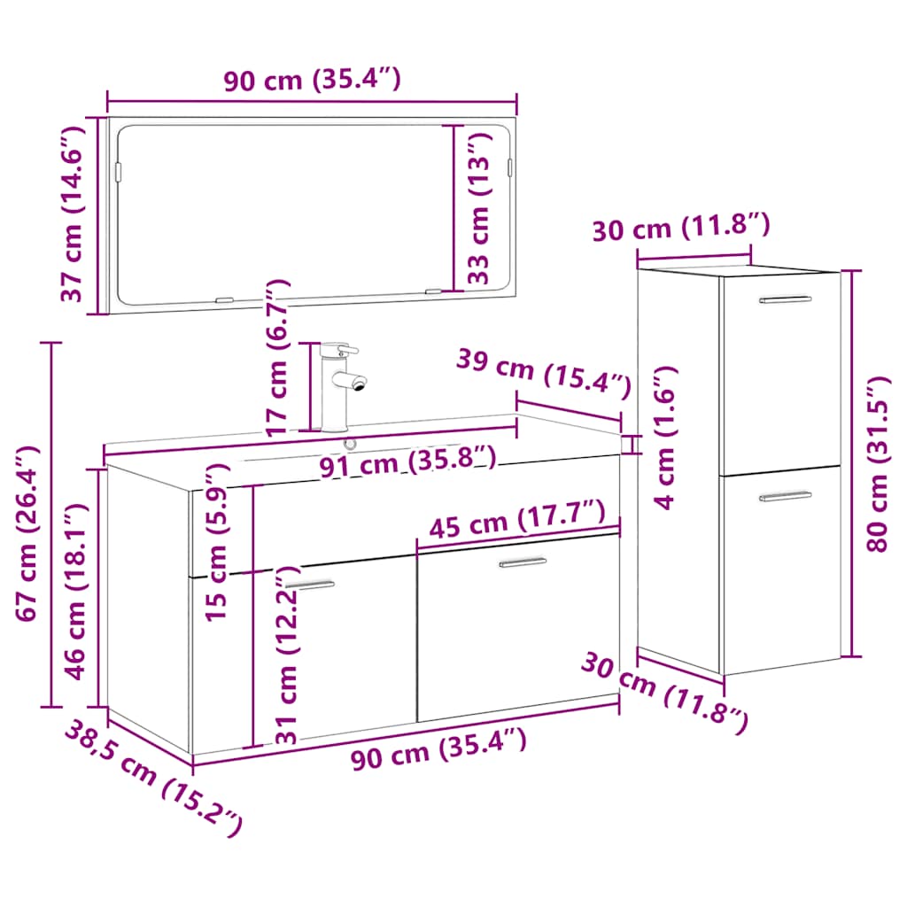 - Afmetingen badkamerkast: 30 x 30 x 80 cm (B x D x H)