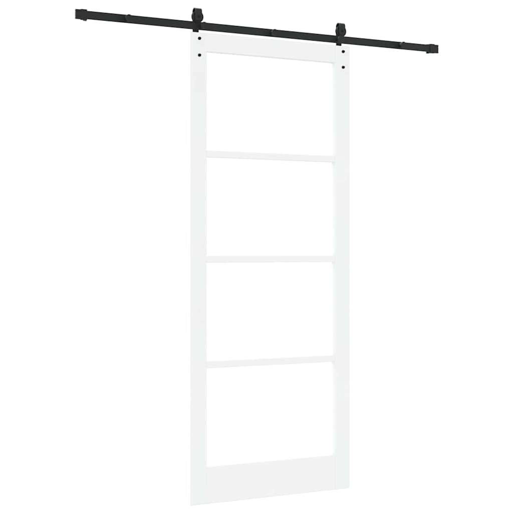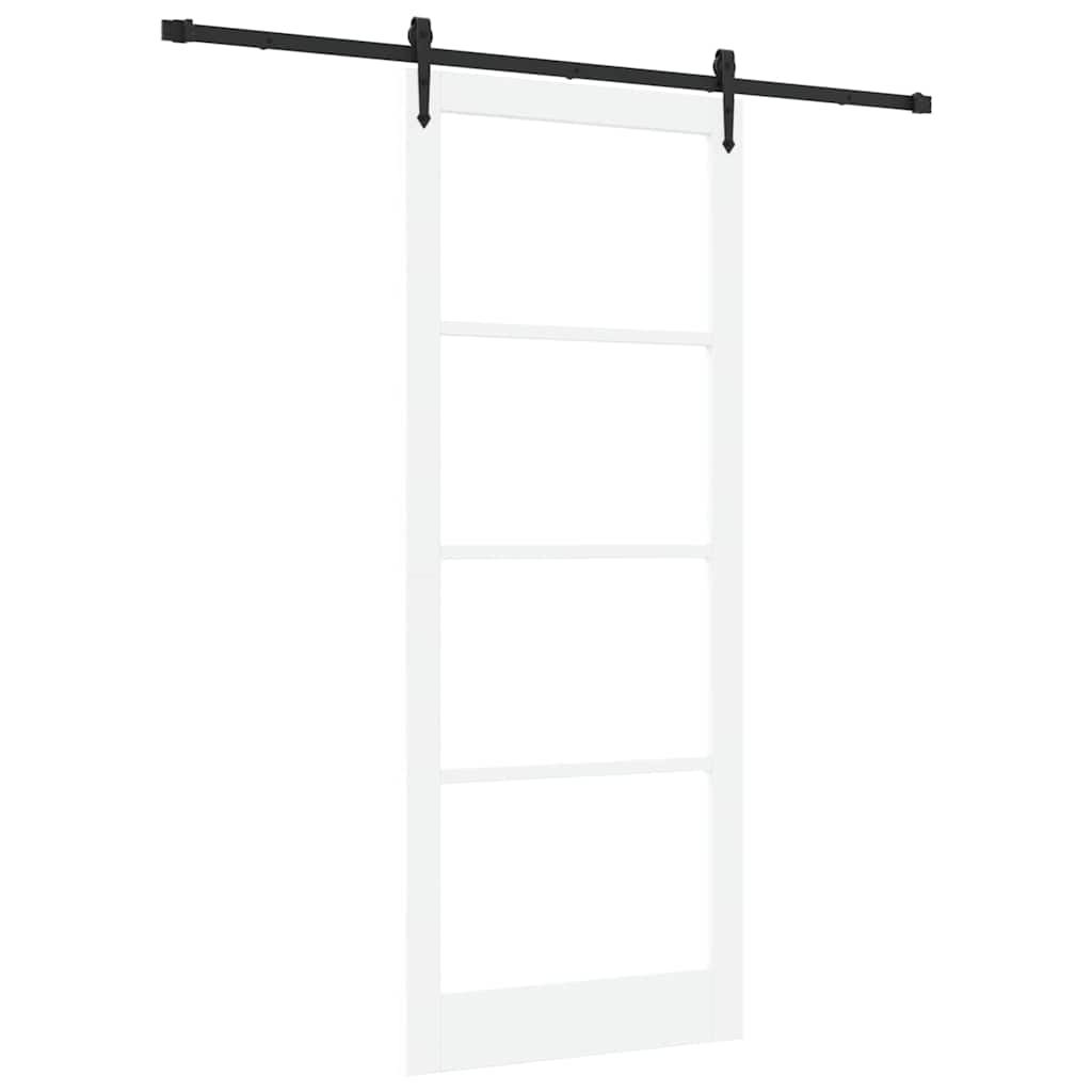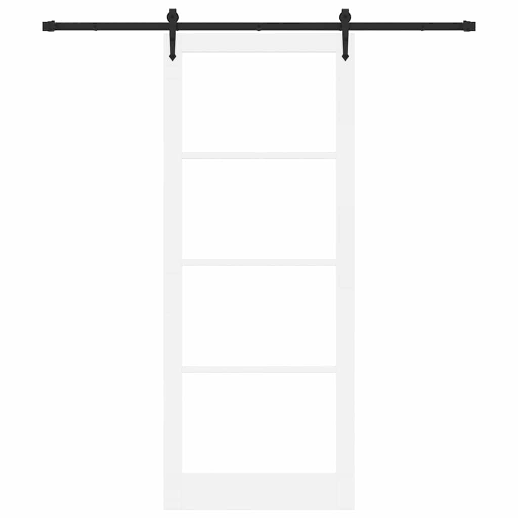 - 1 x Deur, 2 x Glijrail, 2 x Deurstops, 2 x Rollen, 5 x Bevestigingsklemmen, 1 x Vloorgids, Andere benodigde hardware