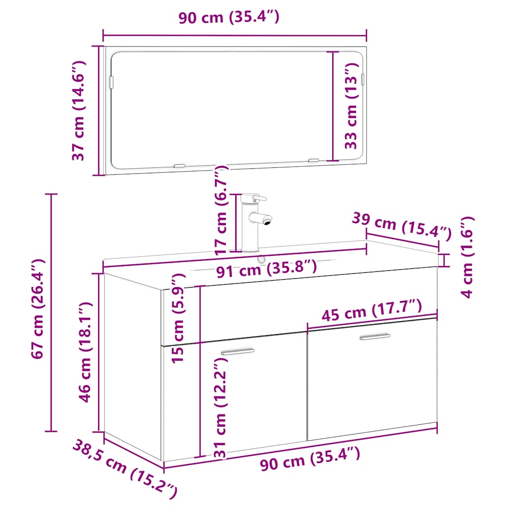 - Afmetingen wastafel: 91 x 39 x 18 cm (L x B x H)
