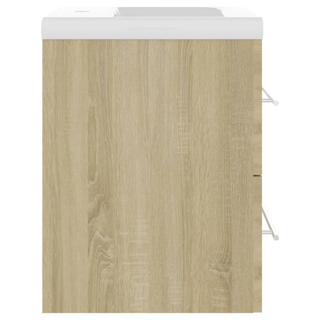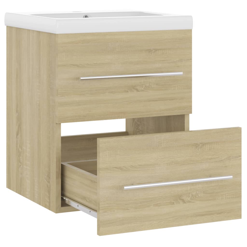 Deze kast is gemaakt van bewerkt hout, waardoor hij stevig en stabiel is. De opbergkast heeft 1 lade en biedt voldoende ruimte om spullen in je badkamer op te bergen. Hij past perfect onder de wastafel en maakt opbergen in de badkamer heel handig. De wastafel is gemaakt van keramiek en dient niet alleen als product voor dagelijks gebruik, maar ook als versiering in je leefruimte. Dankzij zijn trendy en eigentijdse ontwerp past deze wastafel in elk interieur. De overloop zorgt ervoor dat de bak nooit kan overlopen. Het geglazuurde oppervlak geeft een modern en elegant tintje aan deze wastafel. Bovendien zijn de kast en wastafel eenvoudig te reinigen met een vochtige doek.