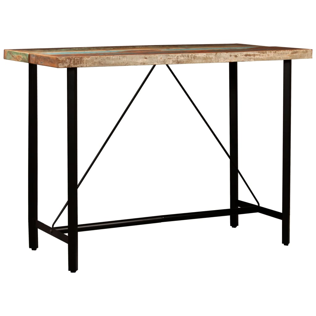 De bartafel is handgemaakt van massief recycled hout. Gerecycled hout heeft de kenmerken van verschillende houtsoorten, zoals teakhout, mangohout en acaciahout. Dit hout is al verouderd, verweerd en gedroogd, dus het krimpt en buigt niet. De sterke stalen poten maken de bartafel zeer stevig en duurzaam, en dragen bij aan de spectaculaire industriële stijl. Het perfecte vakmanschap garandeert dat elke stap van het proces met de grootste zorg wordt uitgevoerd, of het nu polijsten of lakken is.