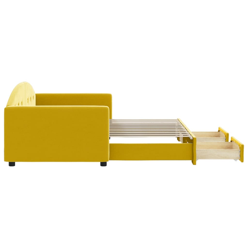 Deze 2-in-1 slaapbank met onderschuifbed en lades kan als bank en als bed gebruikt worden en is een praktische en opvallende aanvulling op je woon- of slaapkamer.