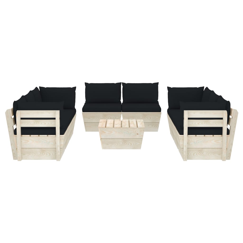 De tuinmeubelset is gemaakt van geïmpregneerd vurenhout waardoor hij duurzaam en stabiel is. Deze set heeft een massieve constructie en vereist weinig onderhoud. Het stevige tafelblad is ideaal om eten en drinken binnen handbereik te houden. Dankzij de 100% polyester bekleding en dikke vulling zijn de palletkussens zacht en zeer comfortabel. Bovendien maakt het modulaire ontwerp het mogelijk om de set in elke gewenste samenstelling te plaatsen.