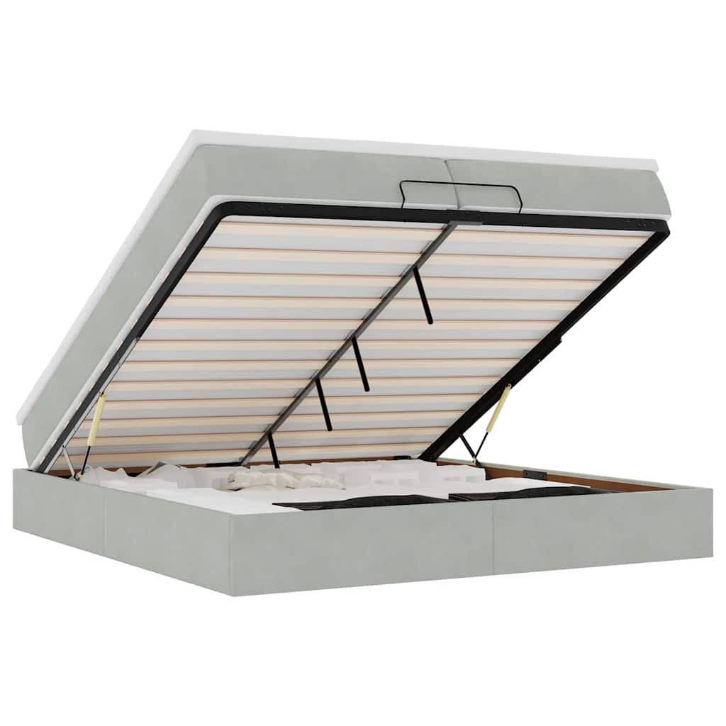 - Ruime opbergruimte onder het bed: Dankzij het hydraulische hefmechanisme biedt het bedframe ruime opbergruimte onder het bed, waarmee de ruimte optimaal wordt benut zonder extra vloerruimte in te nemen. Met een simpele trek aan het handvat tilt de lattenbodem soepel op, zodat je snel en moeiteloos je spullen kunt ophalen.