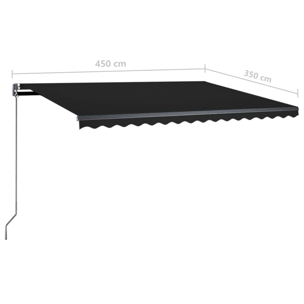 Deze buitenluifel heeft een roestbestendig, gepoedercoat aluminium frame waardoor hij lichtgewicht en toch stevig is. Het zonnescherm is gemaakt van polyester met een hoge dichtheid en een PU-coating, waardoor het uv- en waterbestendig is. De hoek en hoogte kunnen worden aangepast aan je specifieke behoeften. Je kan de luifel openen en intrekken met de lange handslinger. De solar LED''s bieden je ''s nachts energie-efficiënte verlichting. De stevige basis kan 360 graden draaien voor maximale verstelbaarheid.