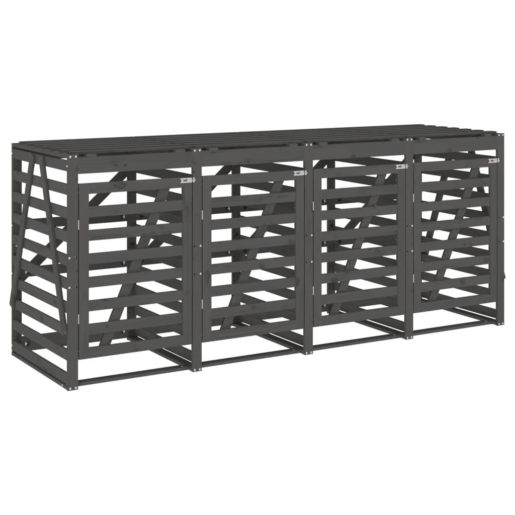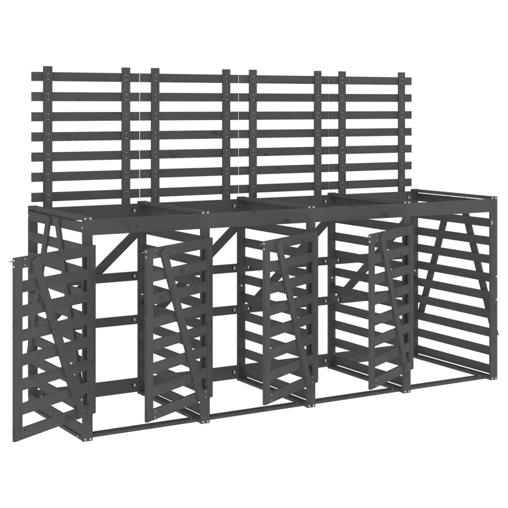 Deze viervoudige houten containerberging houdt de afvalbak in je tuin uit het zicht en zorgt voor een mooie en nette omgeving.