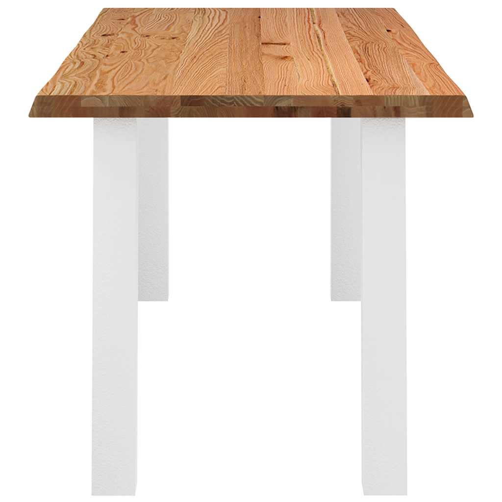 - Het tafelblad heeft een dikte van 4 cm langs de randen voor een robuuste uitstraling, en een dikte van 2 cm in het midden om het houtverbruik en het totale gewicht te verminderen.